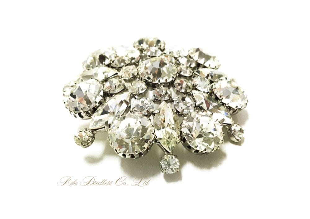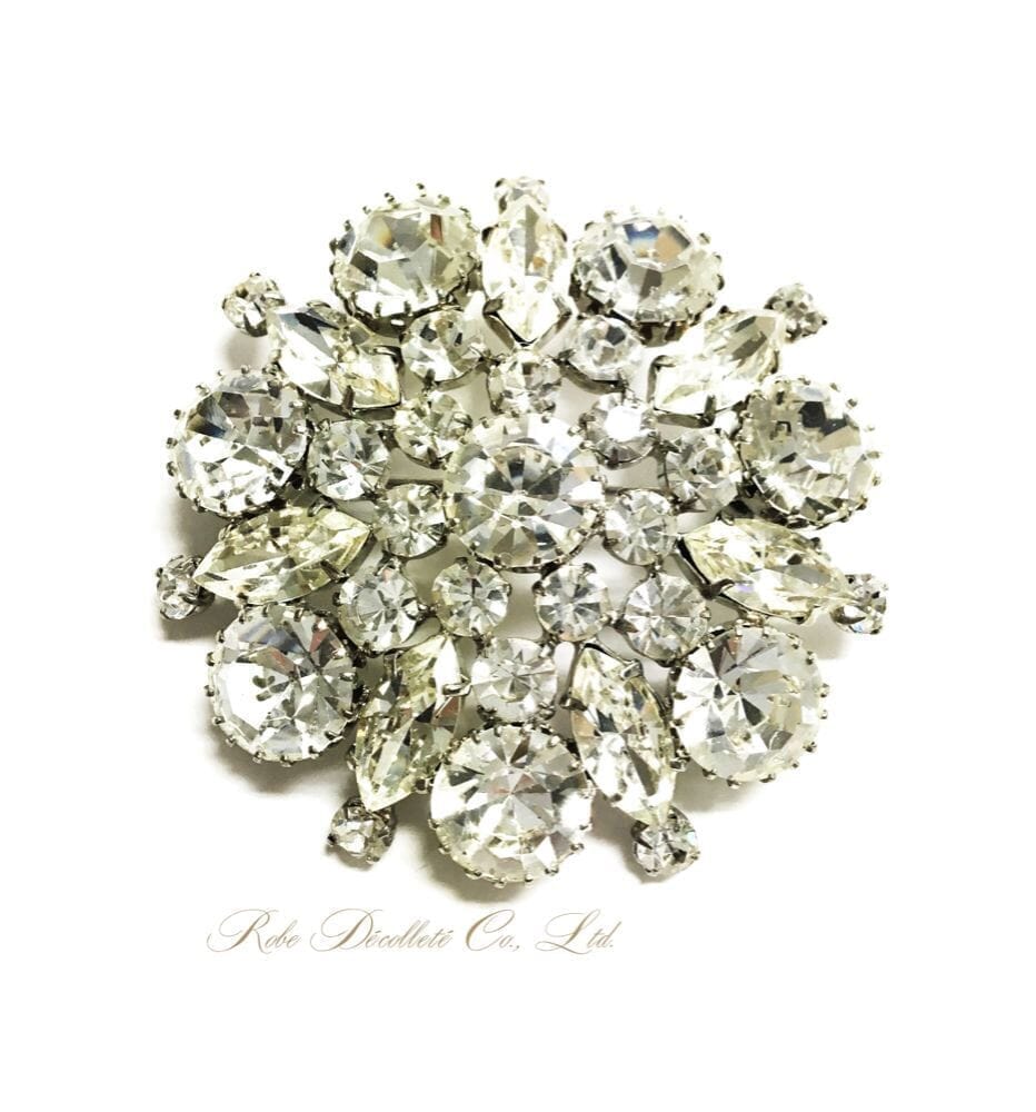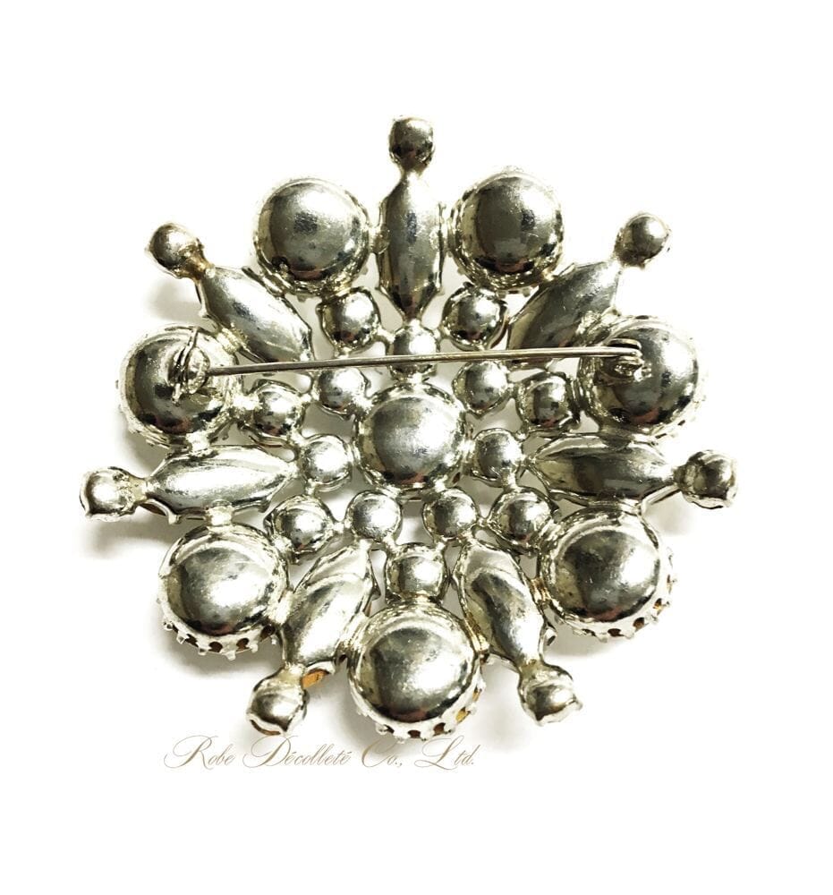 Snowflakes ブローチ・スノーフレーク 雪の結晶のような とても美しい輝きの クリアクリスタルガラスのブローチです。 ドーム型につくられた台座に しっかりと大小のラインストーンが配置され 光に反射する上品な輝きは 魅力的です。 ブローチサイズ 幅65mm X 高さ65mm 厚さ15mm カラー ラインストーン/クリア X 台座 シルバーカラー