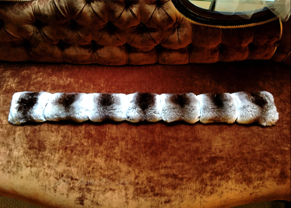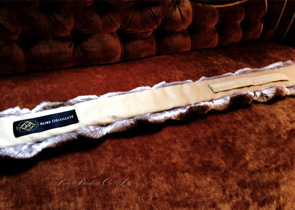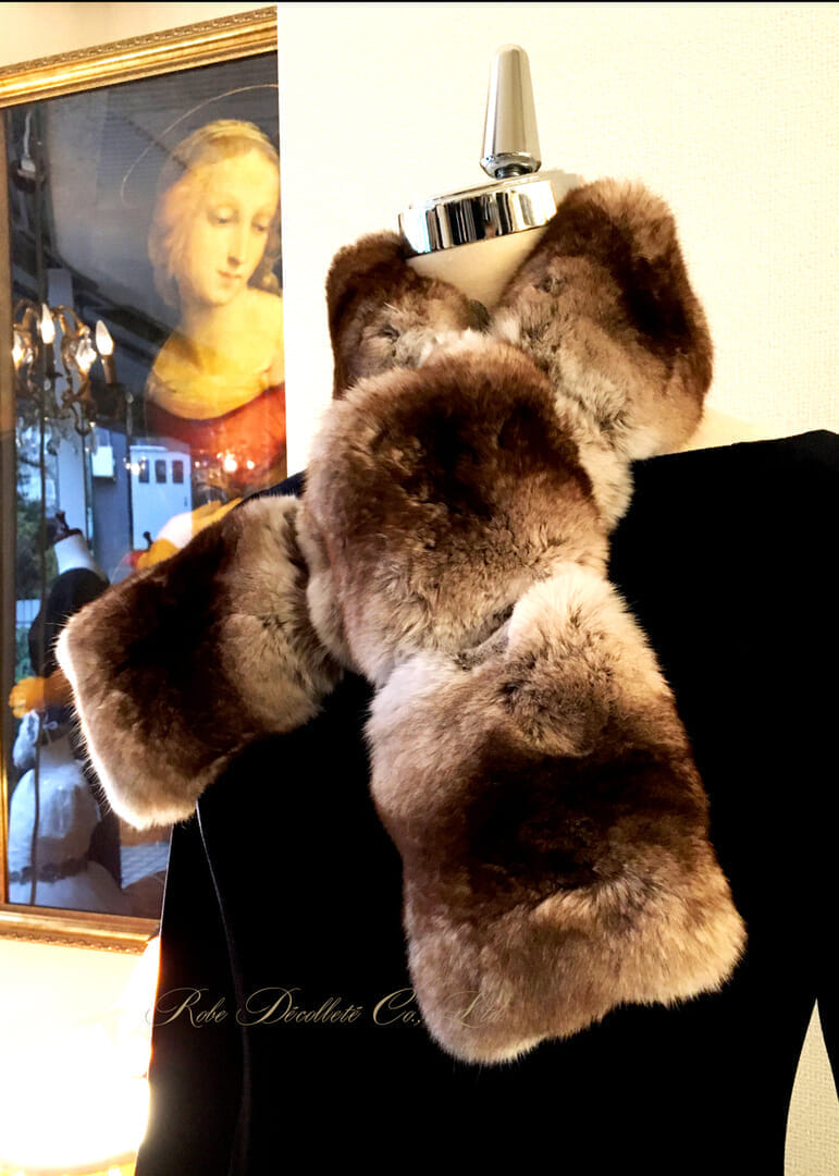 CHINCHILLA TIE Regular Moca チンチラタイ レギュラー 毛足の密な上質なチンチラを 上品なモカブラウングラデーションに染めた レギュラーサイズのチンチラタイ 裏地はイタリア製カシミヤ100% 肌触りも滑らかで暖かい仕様 首に巻いて一巻きできる長めのサイズ ボリュームのあるチンチラが とてもエレガントで贅沢な一品 ぷっくりとした可愛らしさと 印象的な贅沢なサイズ感の チンチラタイです。 サイズ 幅10cm X 長さ88cm カラー モカ 裏地 カシミヤ100%