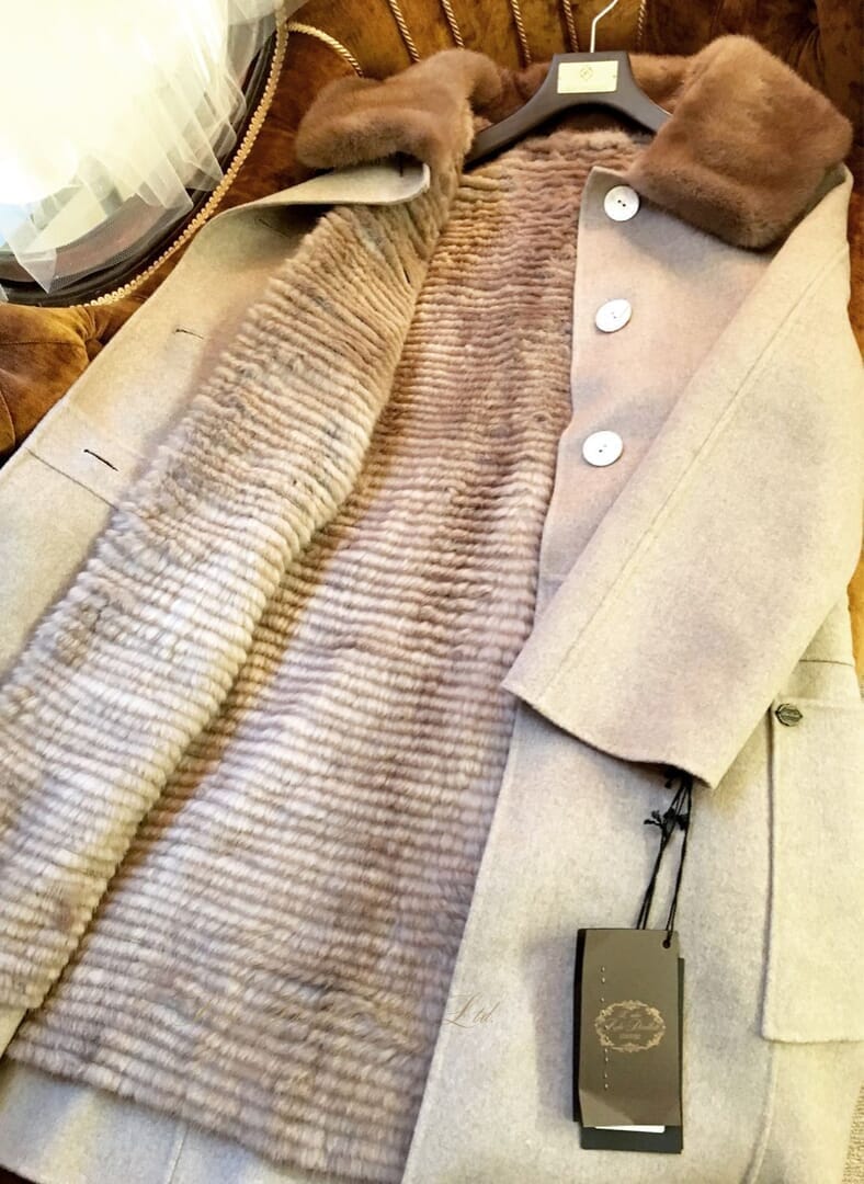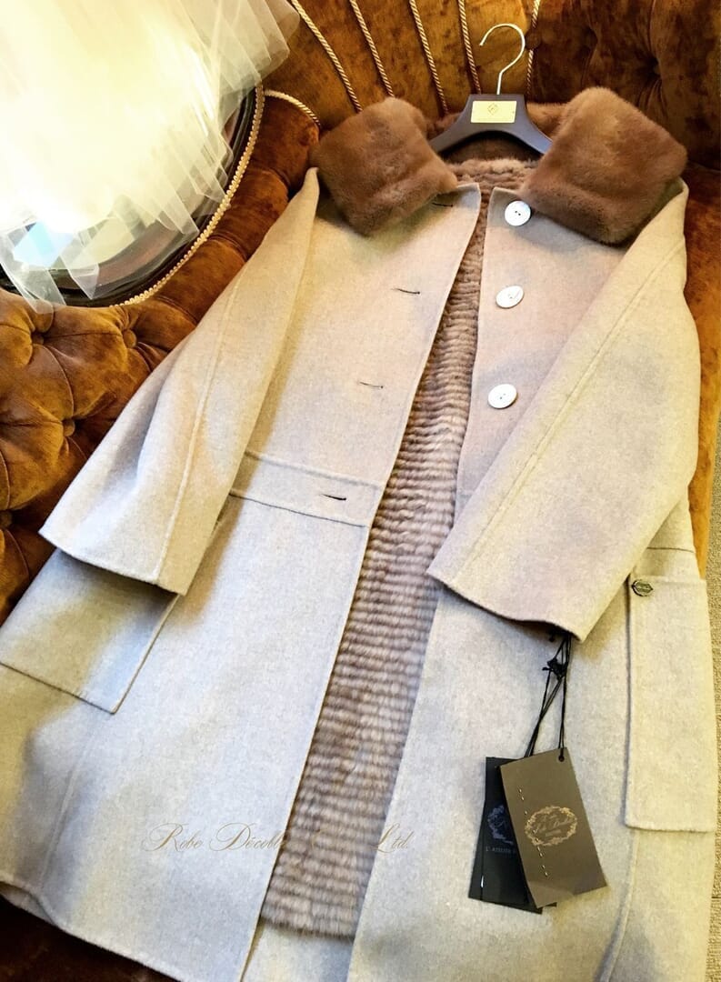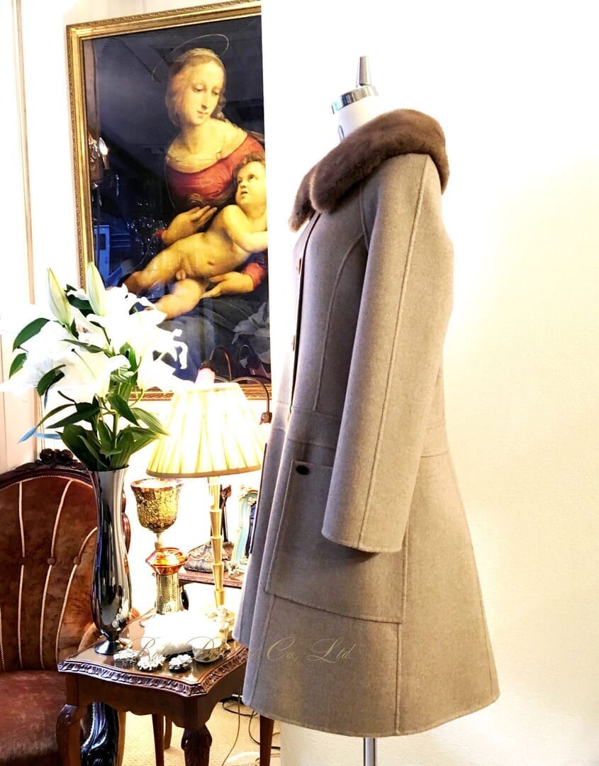 淡いミルクティー色のミンク衿