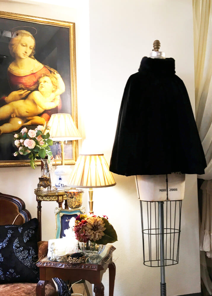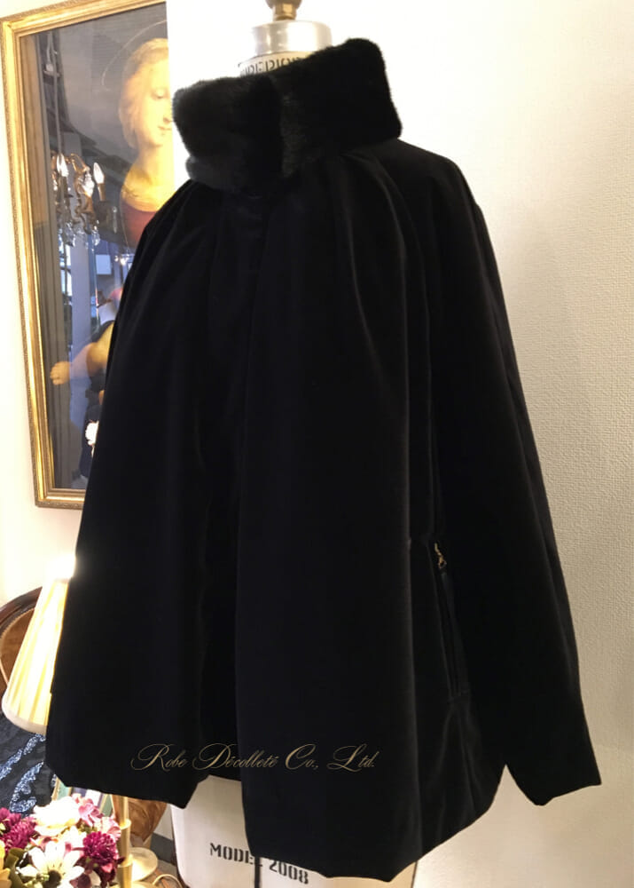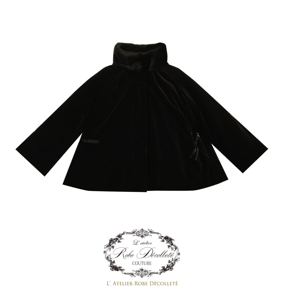 ストレッチベロアに中綿を入れたトラペーズラインのショートコート