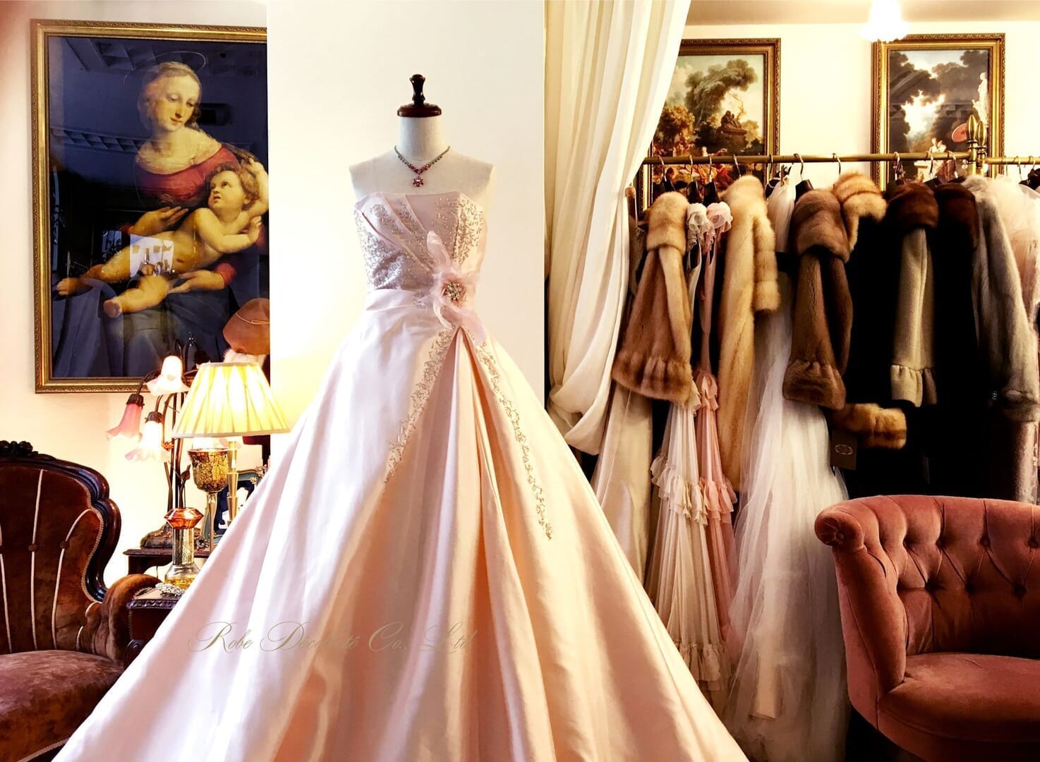 デザインされたミカドシルクのドレス