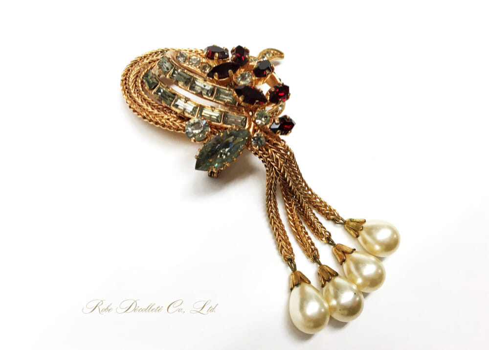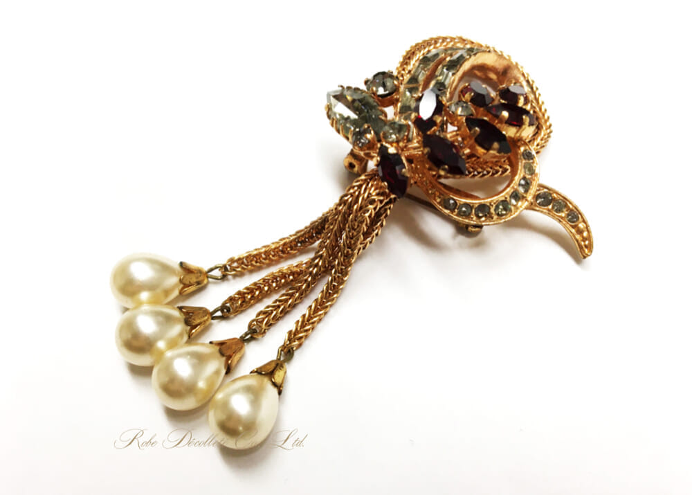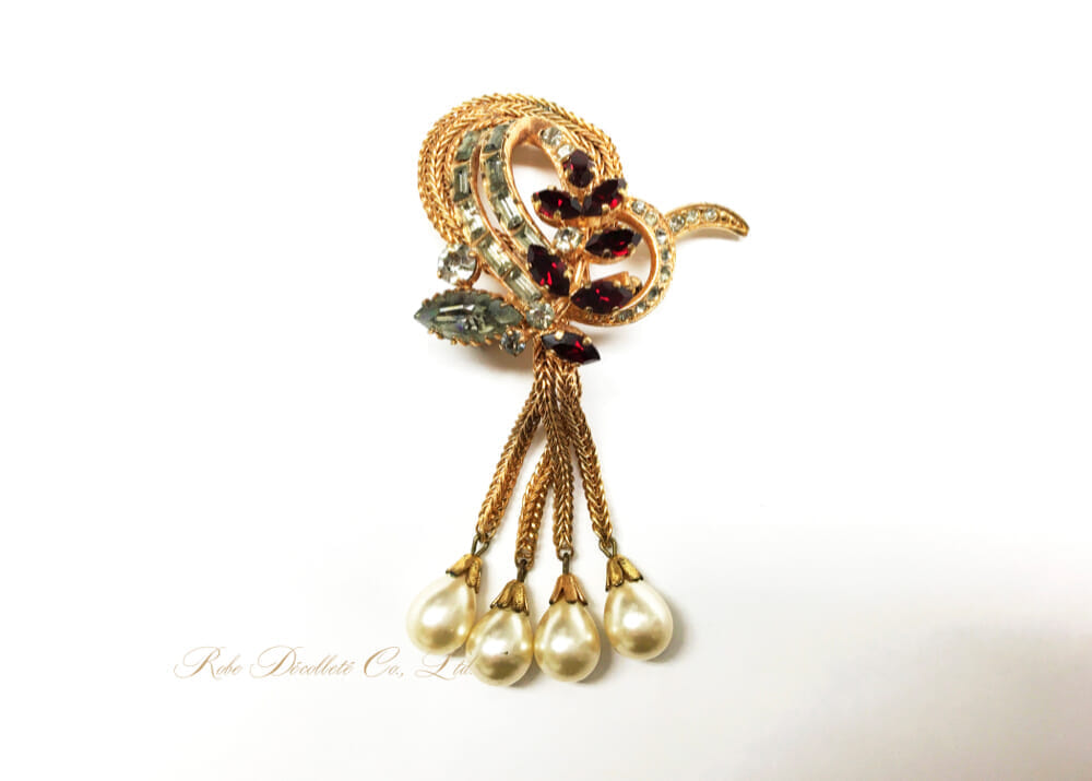 4つのフェイクパールがぶら下がり揺れるデザインで
