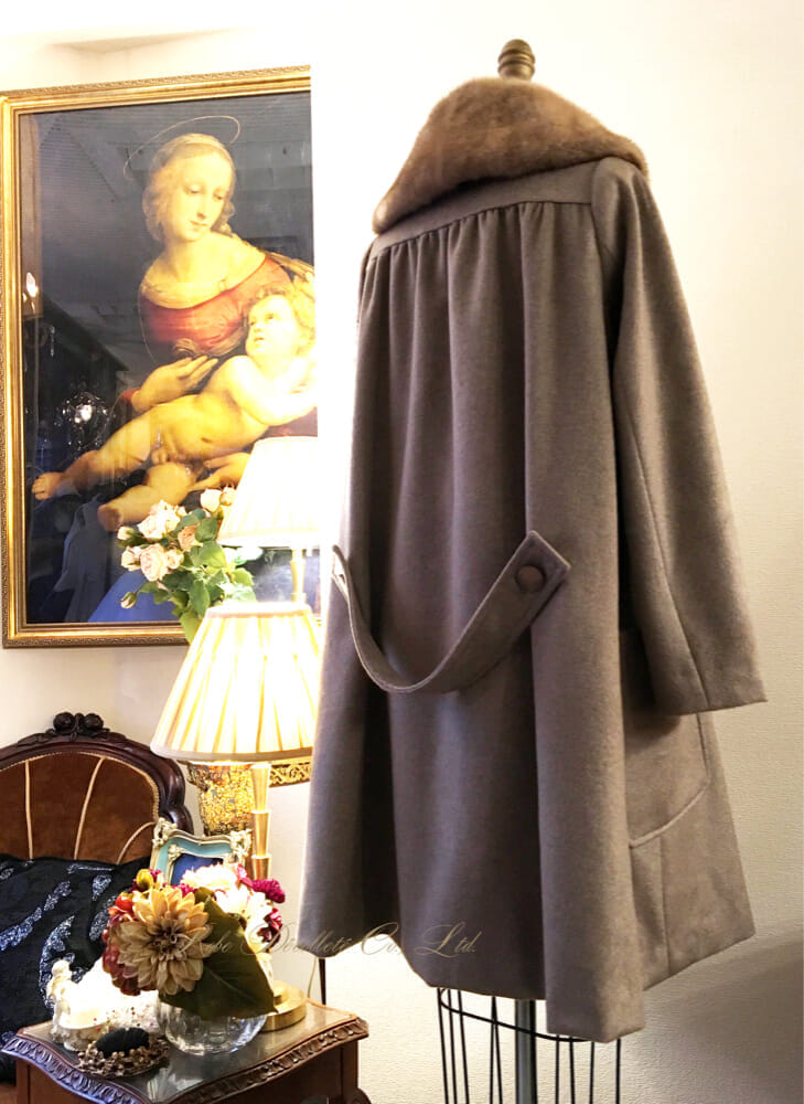 カシミヤの陰影が美しく、ベルトフラップもあえてゆったりとつけ大人っぽい印象にしています。