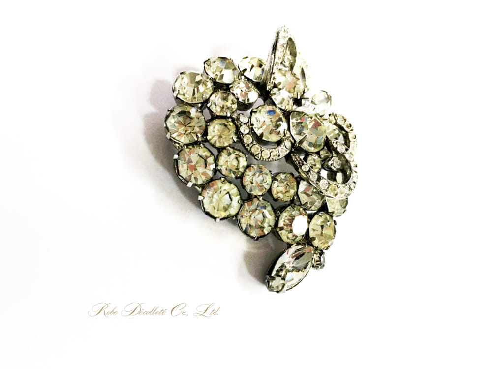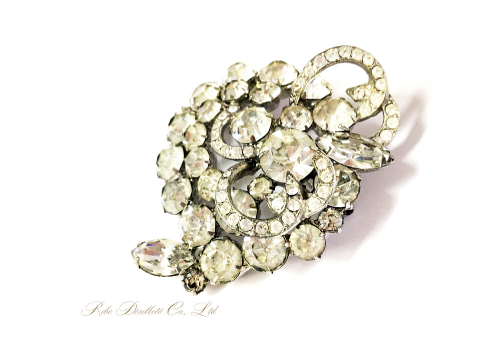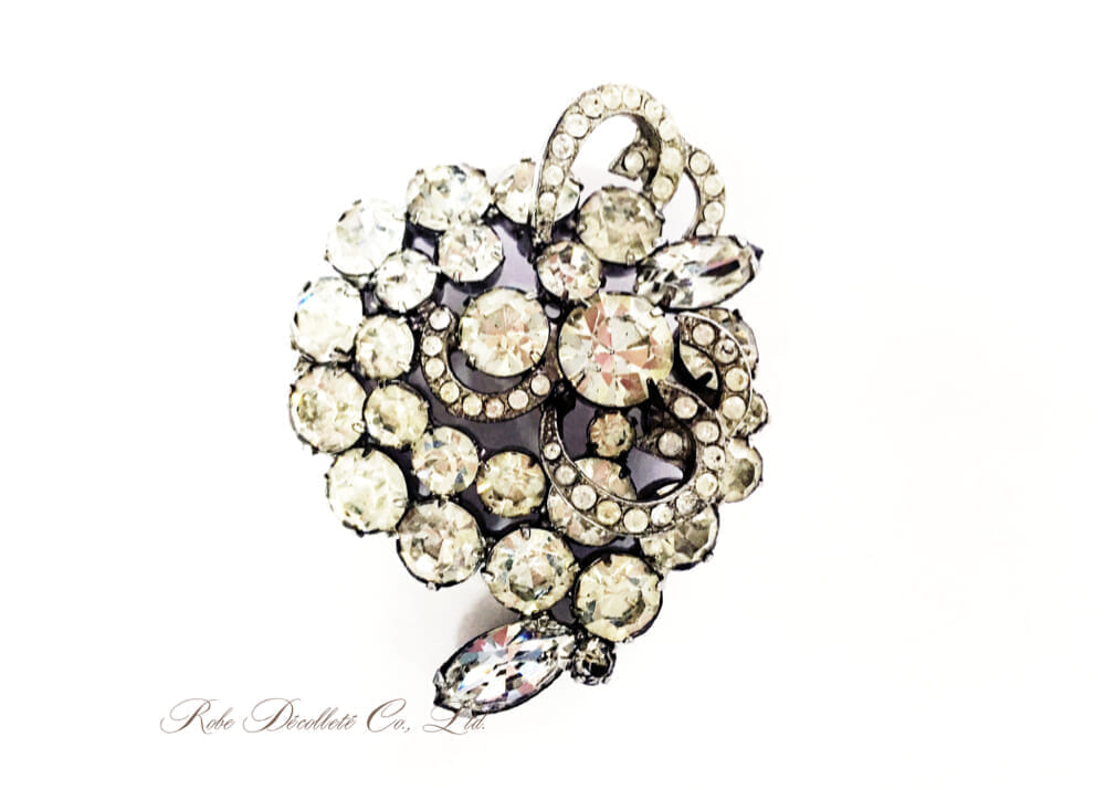 曲線的なドーム型の土台に大きめのクリアラインストーンを配置し